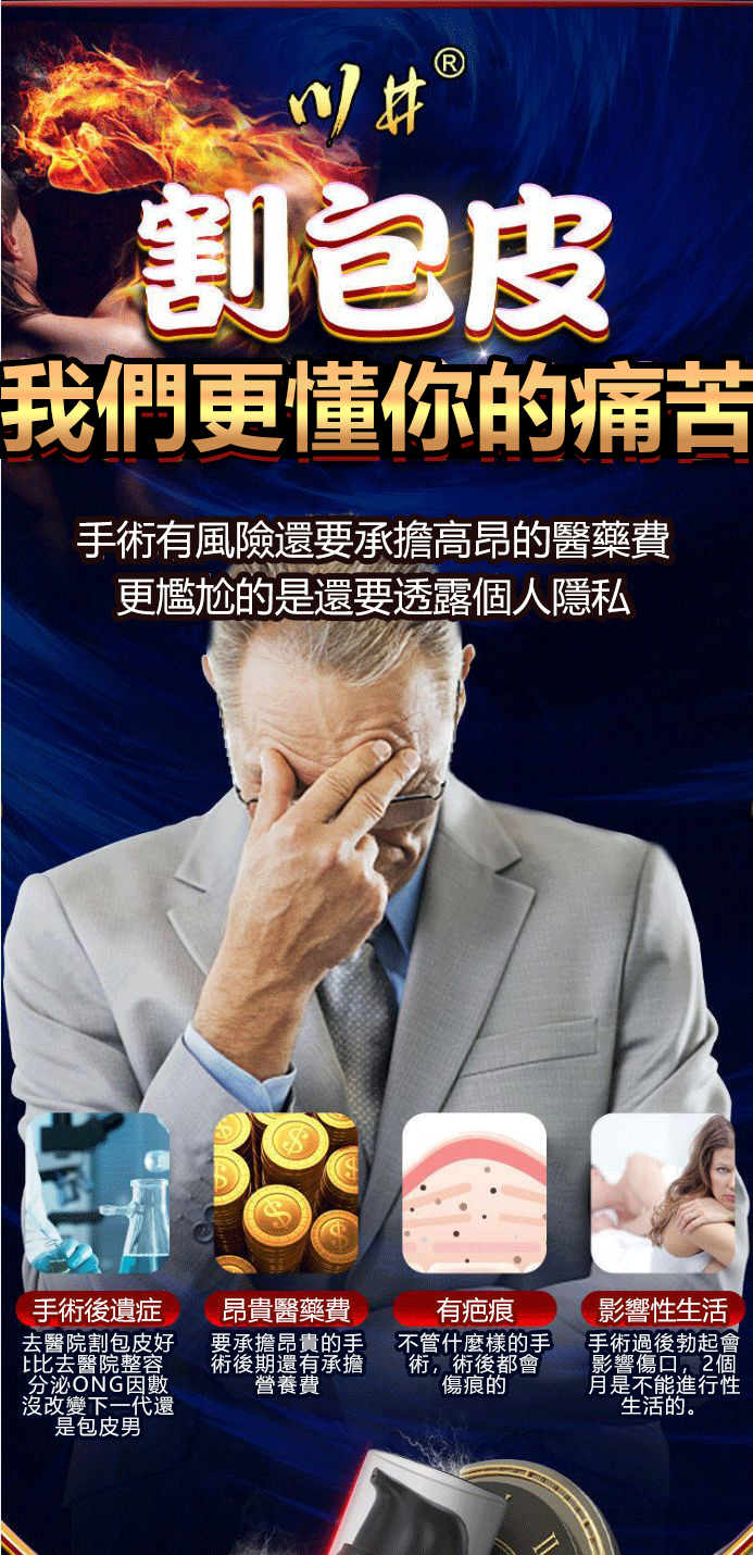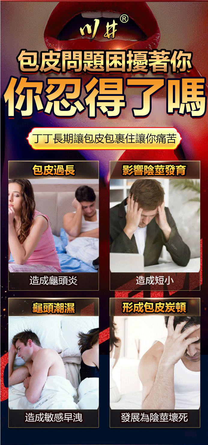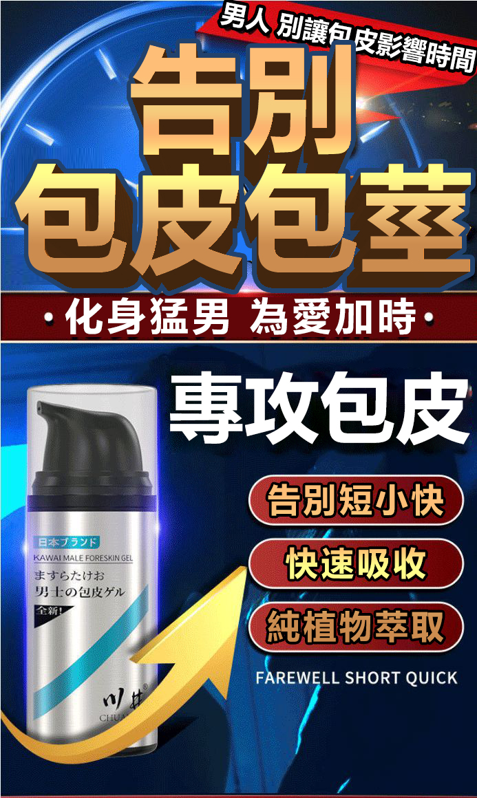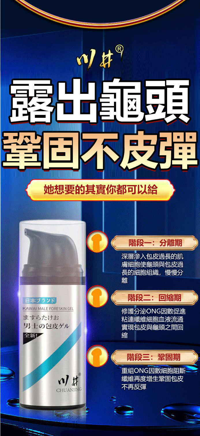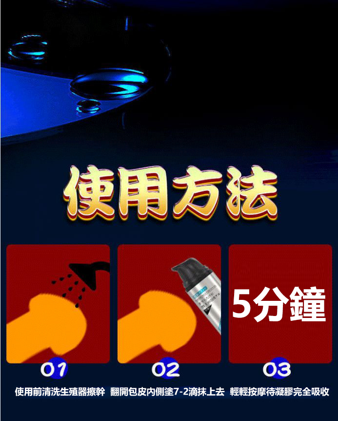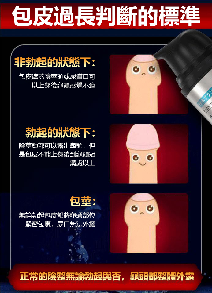 包莖剋星【日本進口男士包皮凝露使用方法】把包皮翻開衝洗乾净,取出適量凝露(3-5滴)塗抹在冠狀和包皮内側(注意避開尿道口),然後用手指輕輕按摩片刻即可吸收,中途無需清洗,有利於充分吸收.佩戴專屬的阻復環卡住冠狀処將包皮固定在根部讓凝膠更好吸收。